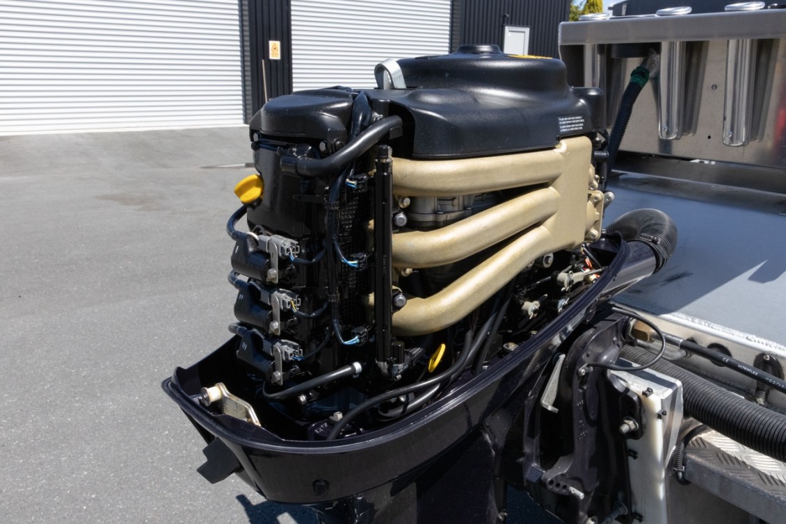 Powering this setup is a 2016 Tohatsu MFS50A – a 50HP 4-stroke engine with just 297 hours, offering reliability, fuel efficiency, and smooth operation. With power trim and tilt, navigating through different water conditions is effortless.